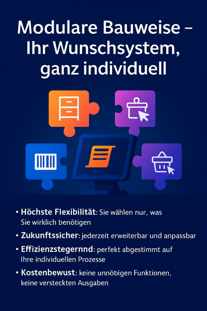 Ob Einzelkasse, Filialnetzwerk, Warenwirtschaft, Gutscheinverwaltung oder Schnittstellen zu Ihrem Online-Shop: Sie wählen aus einer Vielzahl an Modulen und kombinieren diese zu Ihrem ganz persönlichen Wunschsystem.